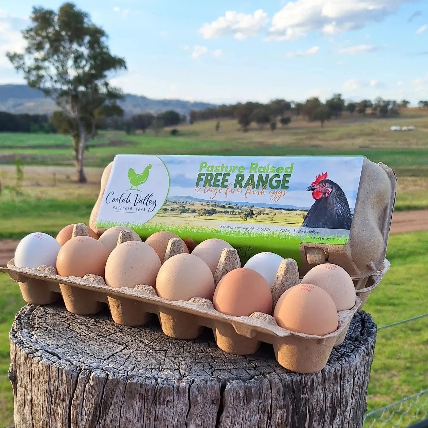Coolah Valley Pastured Eggs are laid by happy hens who have unrestricted access to the outdoors at all times. The hens are regularly moved around the property to fresh pasture which is managed holistically with regenerative farming practices.
